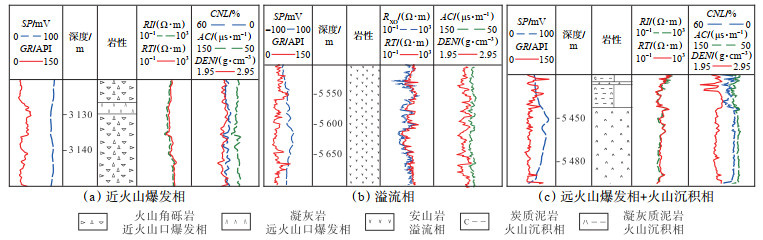 下载原图 图 4 准东地区石炭系火山岩岩相测井响应特征 Fig. 4 Logging response characteristics of lithofacies of Carboniferous volcanic rocks in the eastern Junggar Basin |