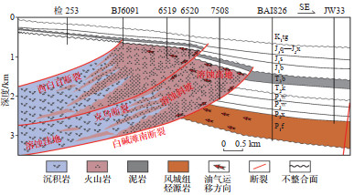 下载原图 图 7 准噶尔盆地克-百断裂带六-七区石炭系内幕旋回特征 Fig. 7 Carboniferous intraformational cycles of the 6th and 7th blocks in Ke-Bai fault zone, Junggar Basin |