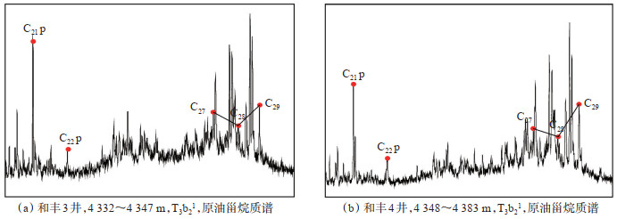 2.3 原油生物标志化合物特征原油生物标志化合物主要包括原油无环类化合物、萜烷化合物和甾烷化合物,可用于原油的沉积环境、母质来源、成熟度、运移及生物降解等方面[13-14]。
