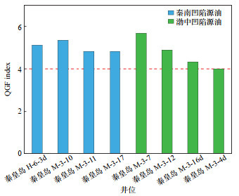 下载原图 图 10 渤海湾盆地石臼坨凸起油藏新近系明下段原油QGF index特征 Fig. 10 Characteristics of QGF index of crude oil in lower Minghuazhen Formation of Neogene in Shijiutuo uplift, Bohai Bay Basin |