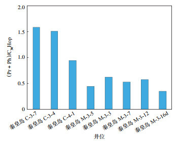 综上分析,秦皇岛M-3区原油属于石臼坨凸起Ⅱ类原油,其原油源于渤中凹陷沙河街组,同时混有秦南凹陷沙三段供给,但区内不同位置原油混源输入程度及特征还需进一步细化分析。