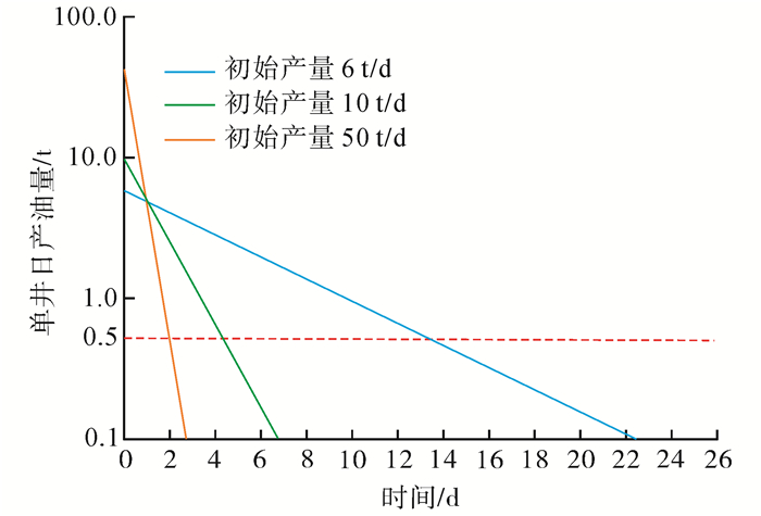 下载eps/tif图 图 5 不同初始产量递减曲线 Fig. 5 The decline curves of different initial rates |