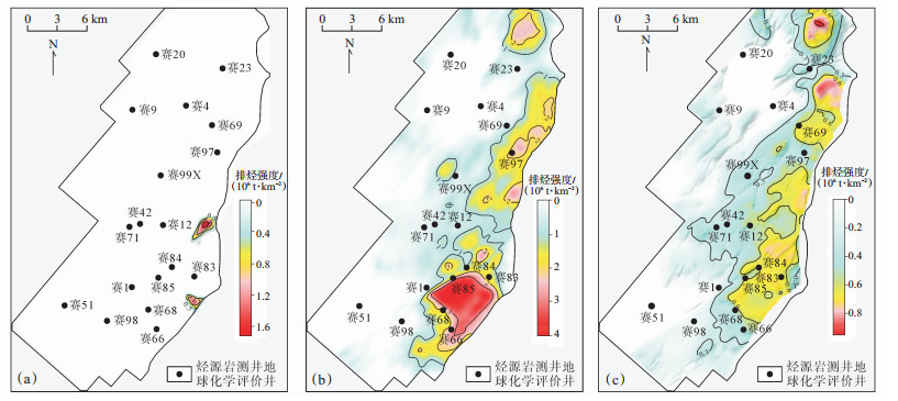 排烃强度是烃源岩有机质丰度、有机质类型、有机质成熟度、厚度和吸附能力的综合反映,可以作为衡量沉积盆地油气勘探潜力的指标之一,排烃强度越大,油气成藏条件就越有利。