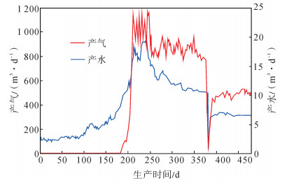 下载eps/tif图 图 9 CB307井排采曲线 Fig. 9 Production curves of CB307 well |