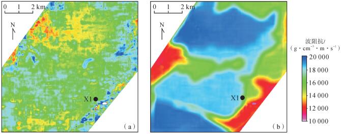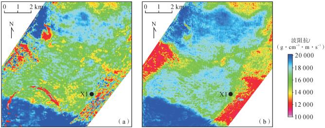 下载eps/tif图 图 8 常规反演(a)与相控反演(b)结果对比 Fig. 8 Comparing of absolute impedance by conventional modeling(a)and facies-controlled modeling(b) |