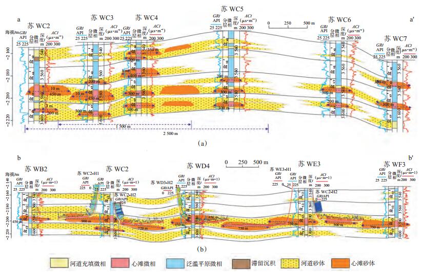 (1)厘定了适用于苏里格致密砂岩气藏开发的地质知识库:心滩宽度为200~450 m、厚度为3~ 10 m、长度为450~1 000 m、宽/厚为45:1~55:1、平均长/宽为2.3:1.0,单期辫状河道宽度为1 000~ 2 500 m。