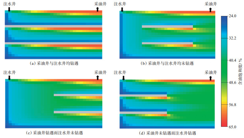 下载eps/tif图 图 4 注采井与夹层不同匹配关系下的剩余油分布 Fig. 4 Remaining oil distribution under different relationship between injection well and interlayer |