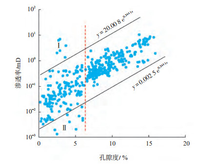 下载eps/tif图 图 4 神府地区太原组孔隙度与渗透率交会图 Fig. 4 Relationship between porosity and permeability of Taiyuan Formation in Shenmu-Fugu area |