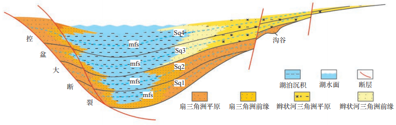 下载eps/tif图 图 7 强烈断陷期小型湖盆扇三角洲发育模式 Fig. 7 Development model of fan delta in small-scale fault basins during intensive rifting stage |