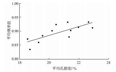 下载eps/tif图 图 11 锦州25-1油田主体区平均概率值与孔隙度交会图 Fig. 11 Crossplot of average probability and porosity of the main body area in Jinzhou 25-1 oilfield |