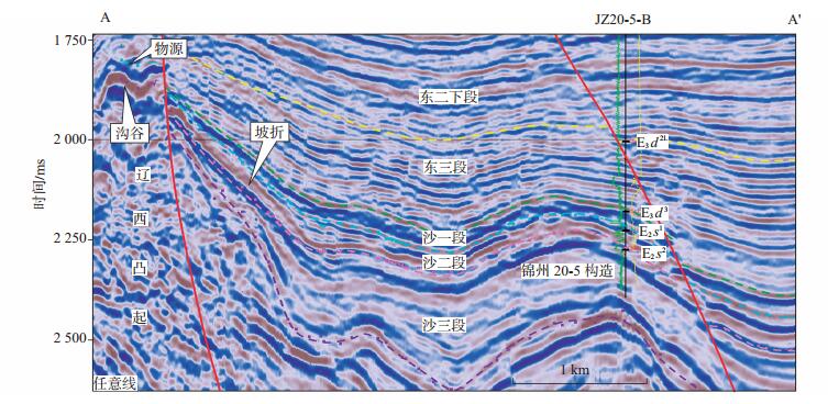 下载eps/tif图 图 2 锦州25-1油田典型地震剖面(剖面位置见图 1) Fig. 2 Typical seismic profile of Jinzhou 25-1 oilfield |