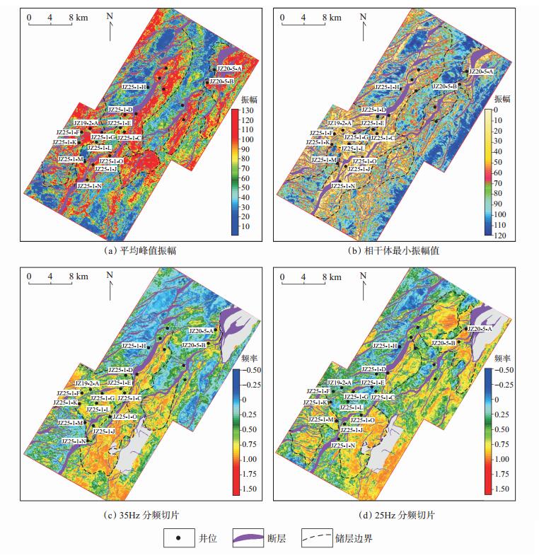 3 结论(1) 以“山-沟-坡-面”耦合控砂机理为指导,通过地震相分析、井震正演模拟等对锦州25-1油田及其围区储层的地震响应特征进行了描述和识别。根据正演模拟结果,可以采用多种能够表征储层地震响应特征的属性来划分储层与非储层。认为沙二段储层主要为一套相对中―低频、中―强振幅、中―低连续的反射,振幅类(平均峰值振幅)、相干类(相干体最小值)及分频类(25 Hz,35 Hz)属性均能够较好地指示储层的分布范围。