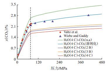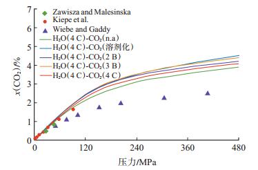 下载eps/tif图 图 3 373 K时CO2在H2O中的溶解度 Fig. 3 Solubility of CO2 in H2O at 373 K |