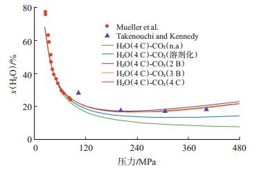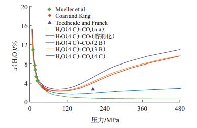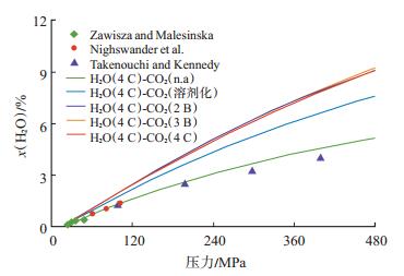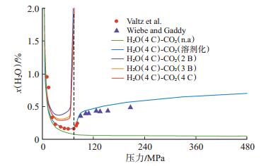 下载eps/tif图 图 6 473 K时H2O在CO2中的溶解度 Fig. 6 Solubility of H2O in CO2 at 473 K |