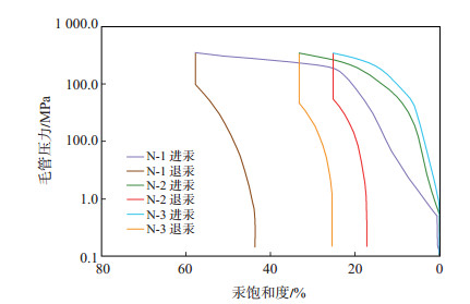 下载eps/tif图 图 3 毛管压力曲线 Fig. 3 Capillary curves |
