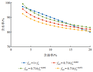图 1显示了含水率大于80%,即含油率fo ∈ (0.02, 0.20)时,幂函数最佳拟合参数m和k分别为0.716和0.092。以下为具体计算方法。