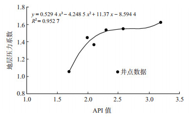 将两组数据进行拟合(图 5),得出地层压力计算公式,即